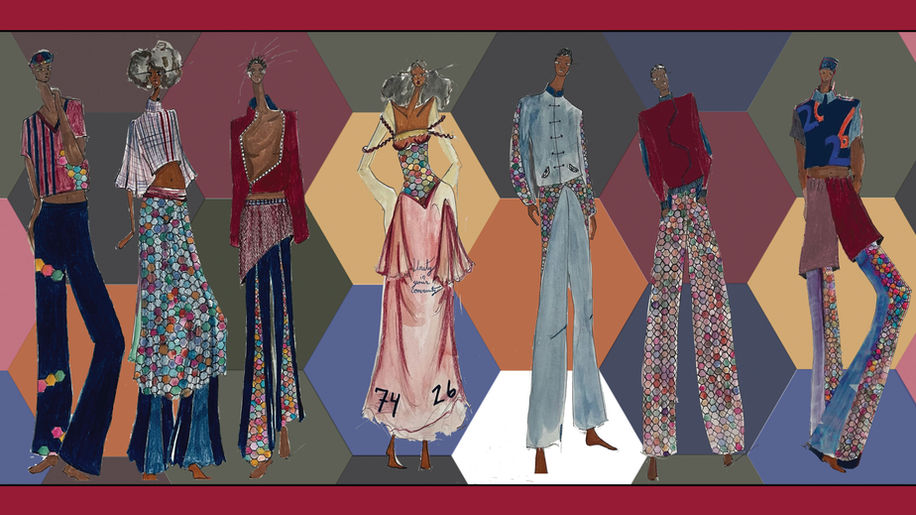 I led a team of seven student designers in a competition-based sustainable design course, developing a cohesive, original collection using responsibly sourced materials. Our client was the Haitian band Zile, and the collection was created for their performance at the 2026 FIFA World Cup.